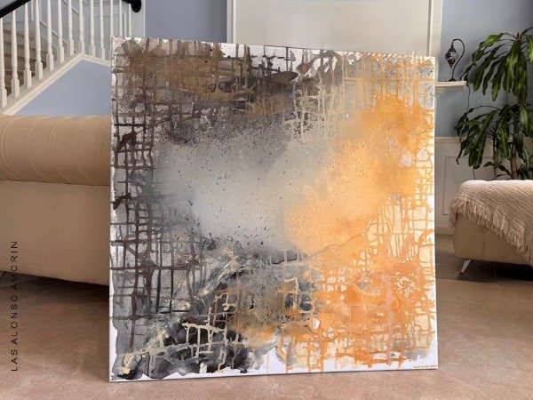 Cuadro pintado a mano con técnica mixta sobre lienzo