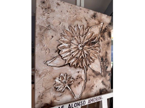 Tríptico pintado a mano con técnica mixta y textura sobre lienzo
