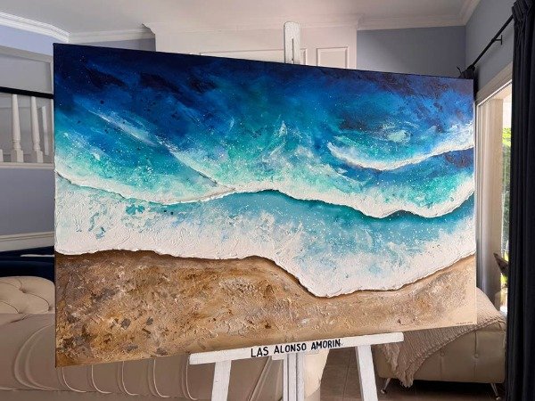 Cuadro pintado a mano con técnica de acrílico y textura sobre lienzo